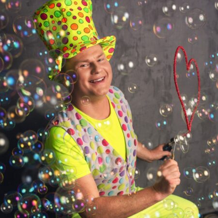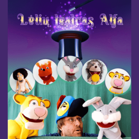 Dalyvauja vaikų mylimi personažai Katinėlis, Lapė, Gaidelis.