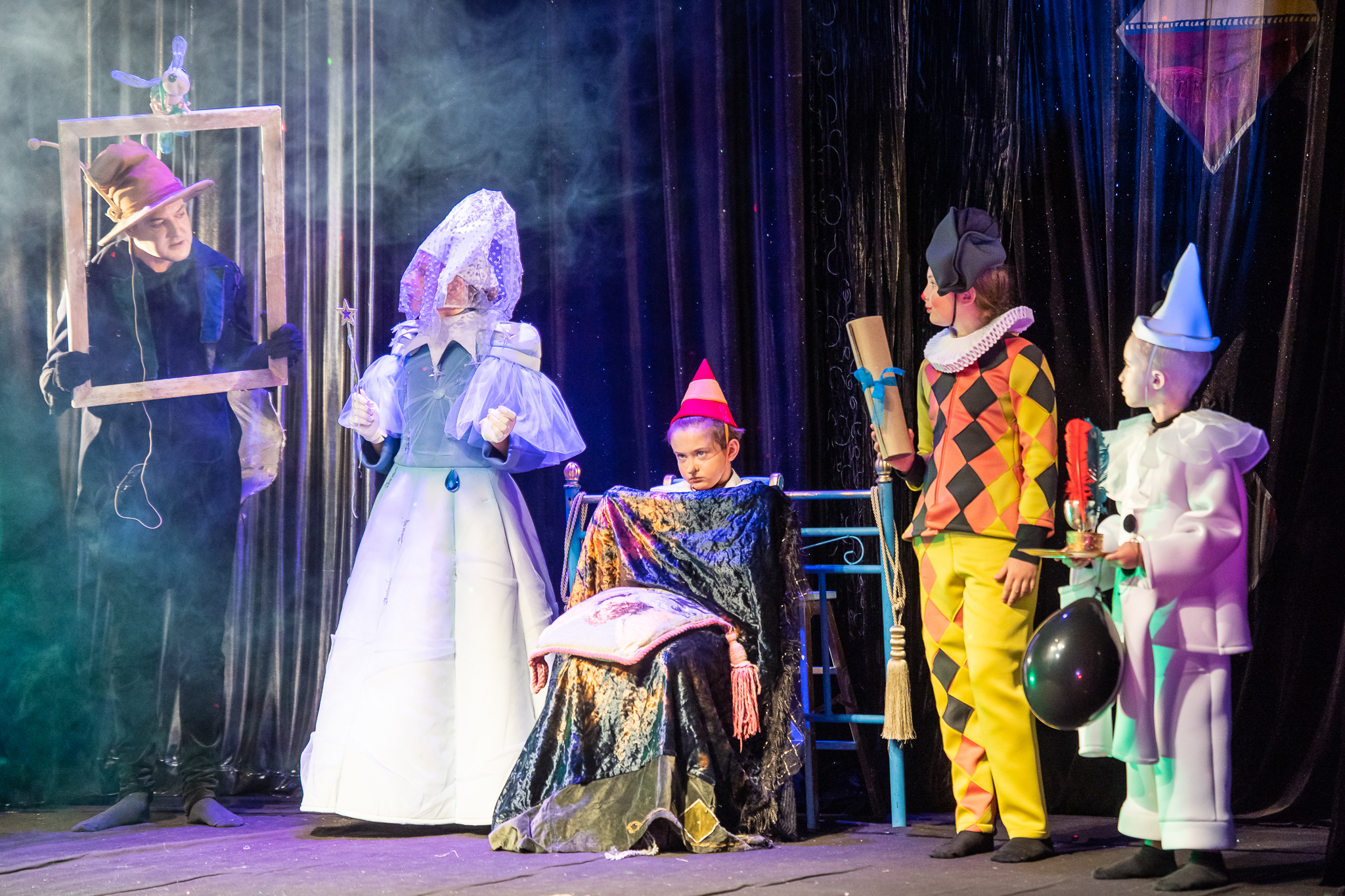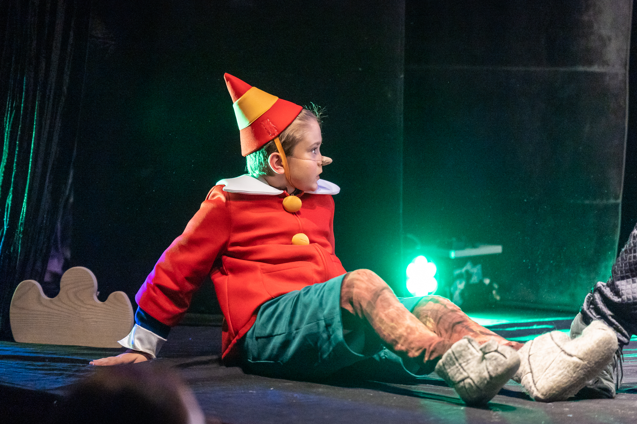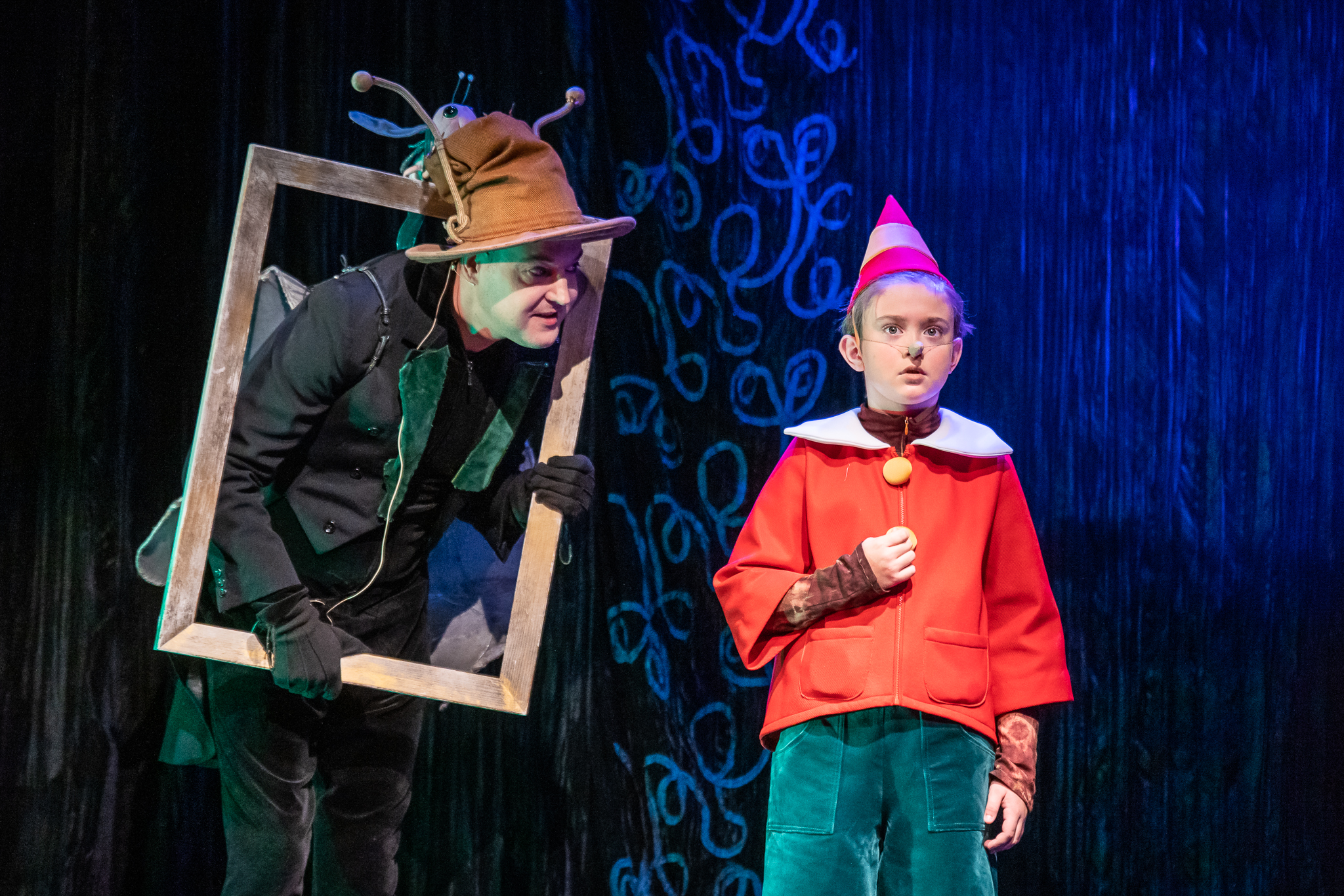 Scenoje atgyja spalvingas Pinokio pasaulis – nuo Geppetto dirbtuvės iki Stebuklų šalies, su kruopščiai kurtais kostiumais ir išradinga scenografija.